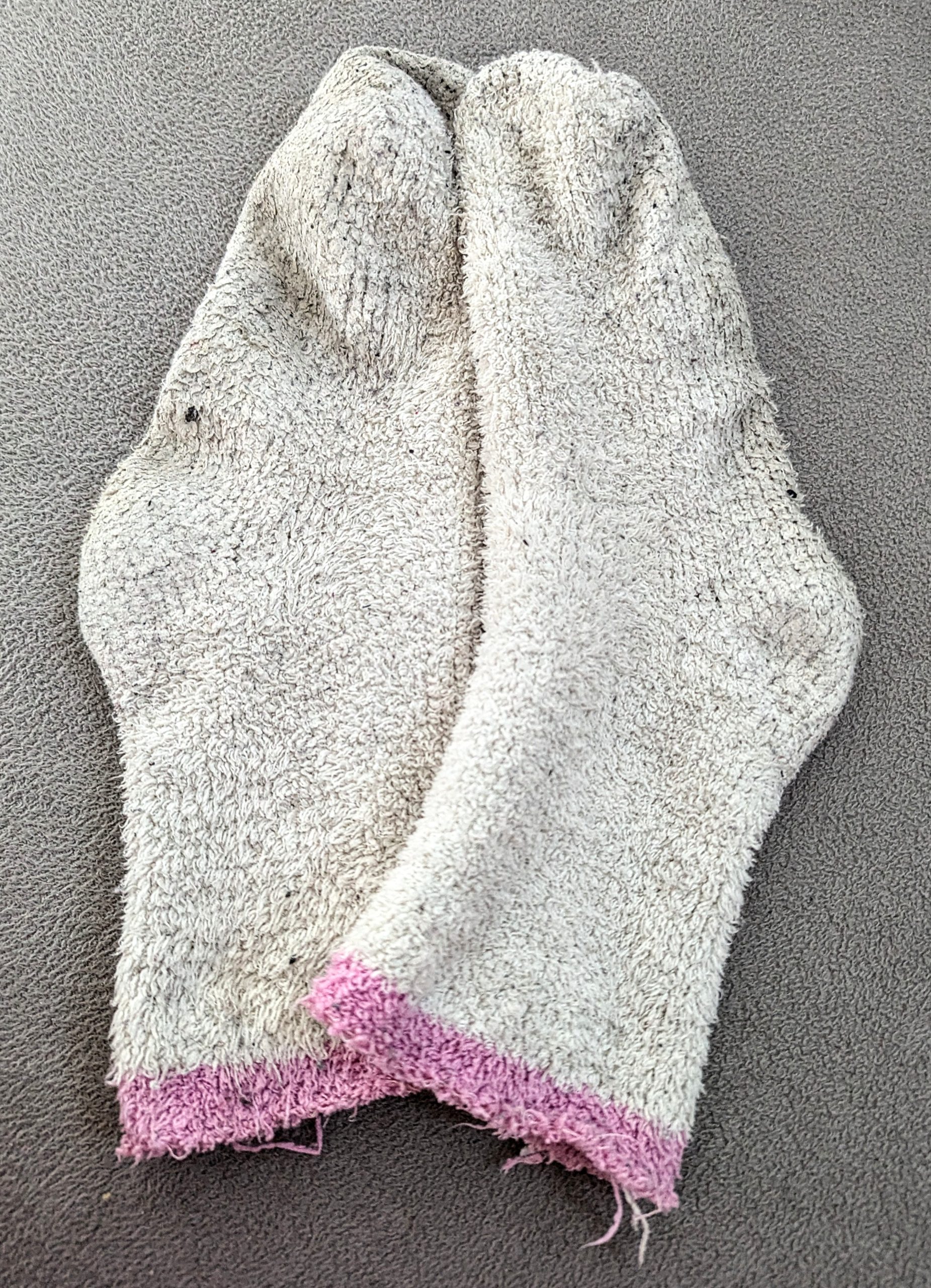 Dejlig bløde fluffy strømper, der er slidte og beskidte.