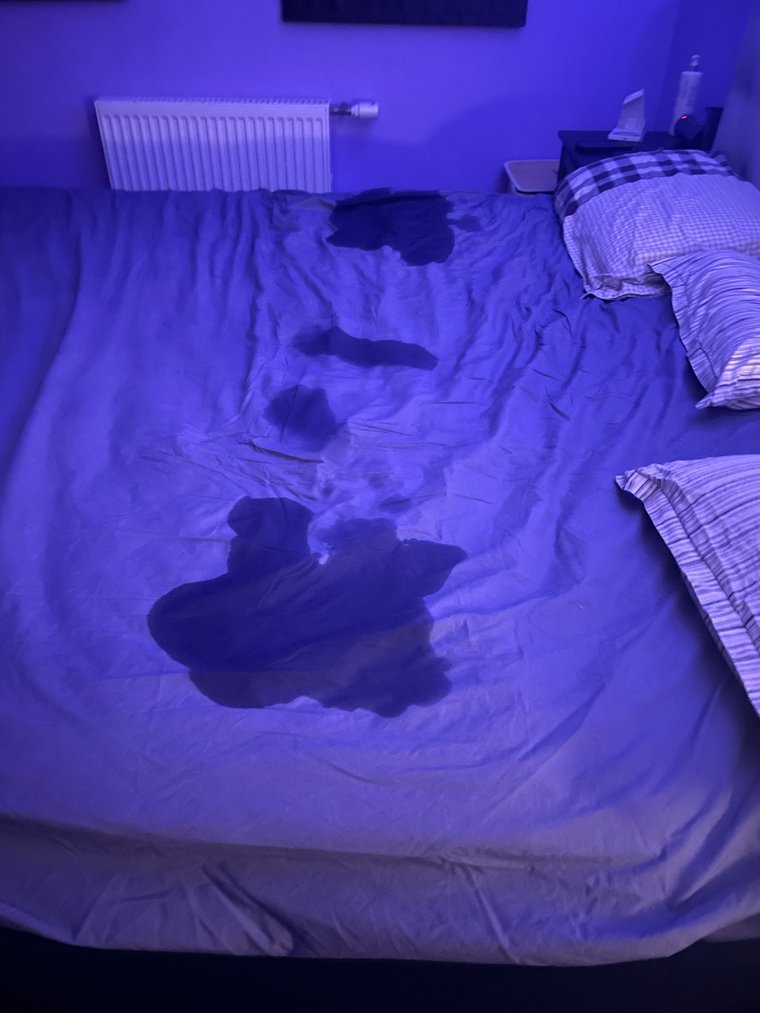 Du ser mine billeder af neglene, af hvor våd jeg er og hvor våd sengen blev efterfølgende.